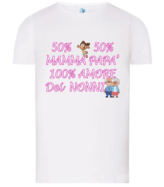 50 % Mama 50 % Papa Liebe zu Großeltern - T-Shirt für Jungen/Mädchen Mod. Baby & Kind von 0 bis 8 Jahren