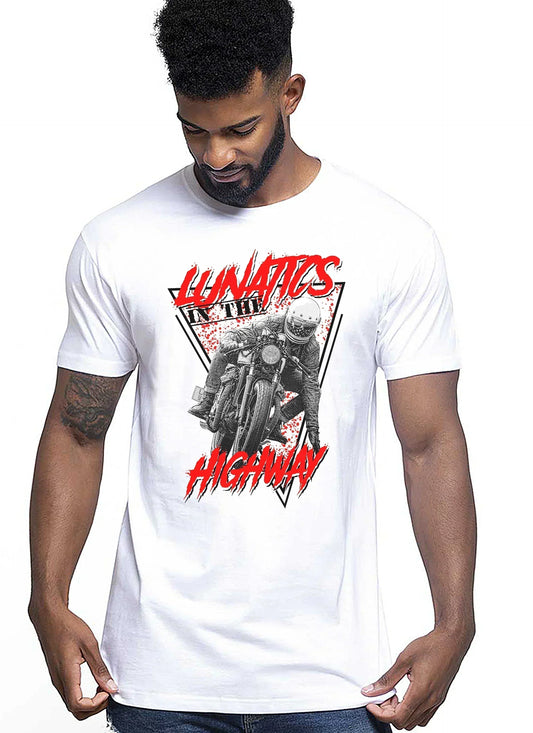 Lunatics in the HigWay Auto Moto e Bici 161-2019-2 T-shirt Urban Men Uomo 100% Cotone Pettinato JK