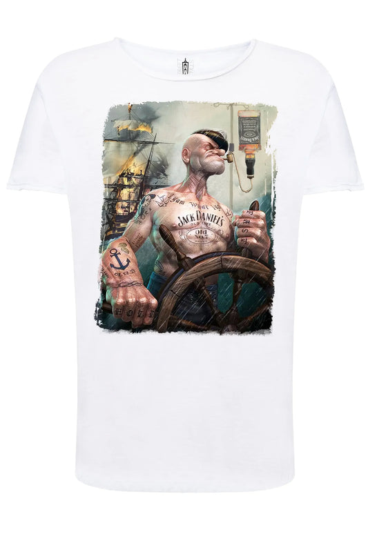 Popeye Jack Daniels T-Shirt Uomo Cotone Fiammato